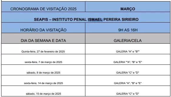 SEAPIS – INSTITUTO PENAL ISMAEL PEREIRA SIRIEIRO